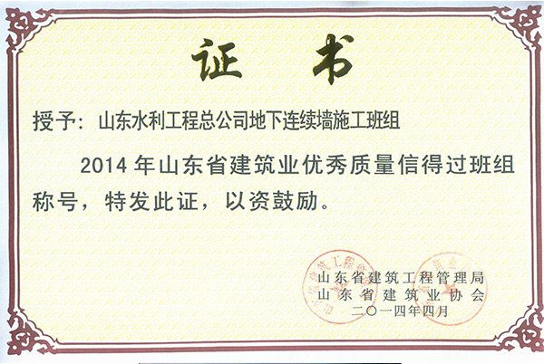 世俱杯最新官网_世俱杯(中国)“地下连续墙施工班组”荣获2014年山东省建筑业优秀质量信得过班组称号