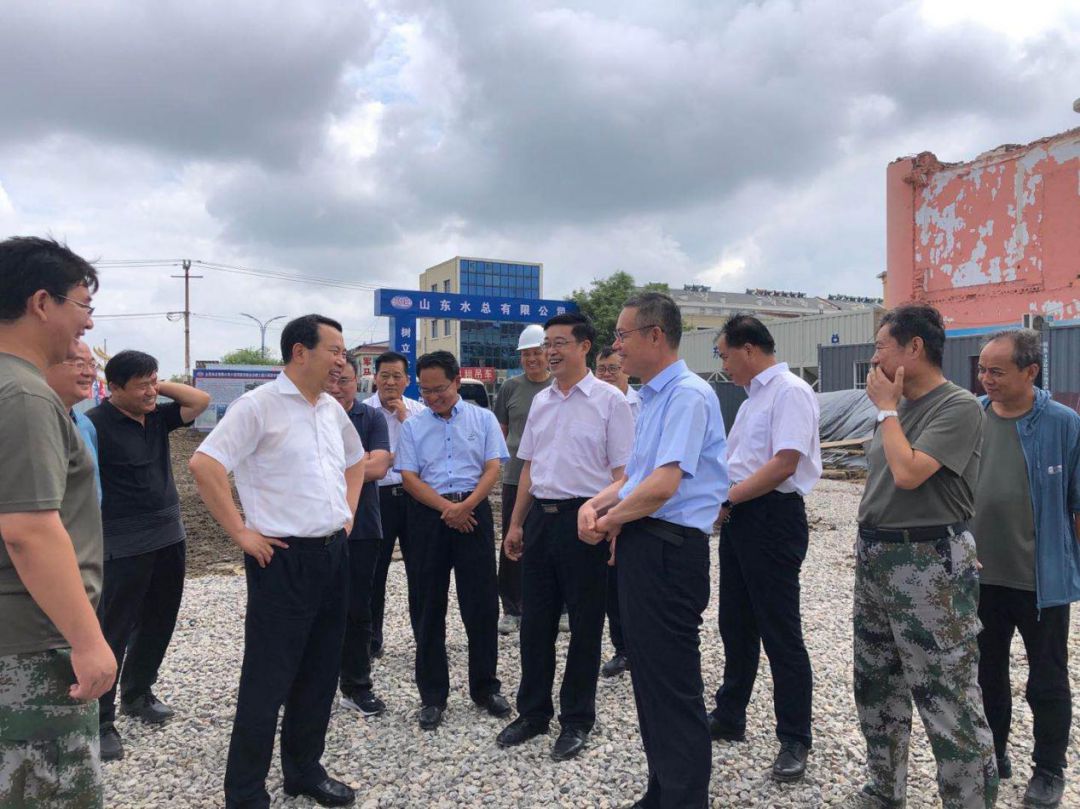 2020年7月13日,山东省水利厅厅长刘中会在寿光市委书记赵绪春的陪同下,到第二分世俱杯最新官网_世俱杯(中国)负责实施的小清河防洪综合治理工程羊桥泵站视察工程建设及防洪度汛情况,世俱杯最新官网_世俱杯(中国)董事长刁望利陪同参加。刘厅长对羊桥泵站水下主体工程完工表示祝贺,对奋战在施工一线的工作人员表示慰问。羊桥泵站是小清河全线开工时间最晚、施工难度最大的建筑物,山东水总能够克服诸多困难圆满完成工程建设任务,体现了国企担当。刘厅长赞扬了世俱杯最新官网_世俱杯(中国)施工组织合理、工序衔接紧密高效,通过不懈努力向业主单位、向省水利厅交上了完美答卷。他要求在做好剩余工程施工的同时要做好防洪度汛工作,确保在建工程在汛期不出问题,备齐备足防汛物资、机械、人员,做好防大汛、抗大洪的准备。
