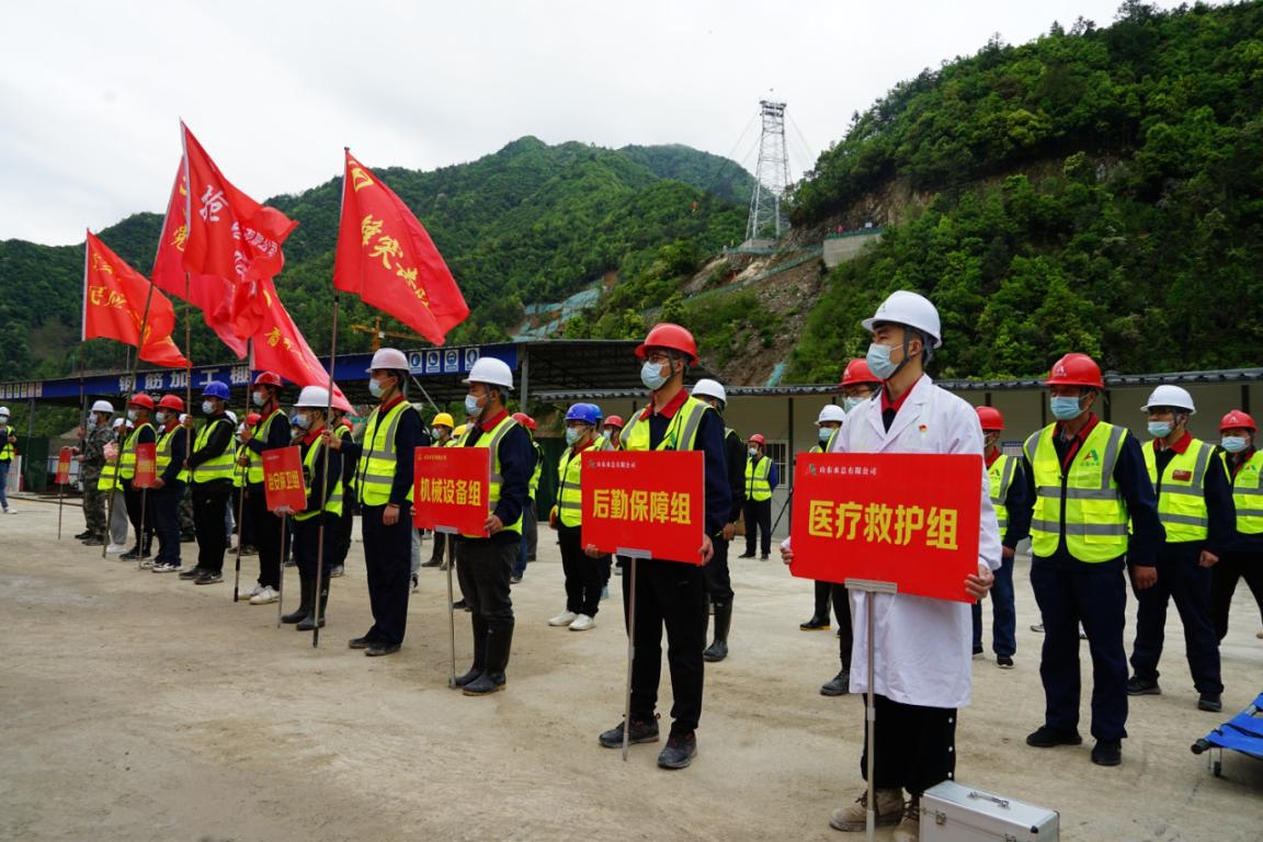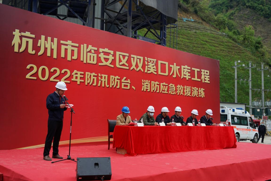 浙江省2022年汛期即将来临,为了确保工程安全度汛、提高参建人员风险防范意识和应急处置能力,4月14日上午,杭州鲁润世俱杯最新官网_世俱杯(中国)组织杭州双溪口水库工程各参建单位人员开展2022年防汛防台和消防应急救援演练。杭州市水利质监中心、临安区水利水电局、清凉峰镇人民政府、双溪口水库工程指挥部领导到场观摩指导。