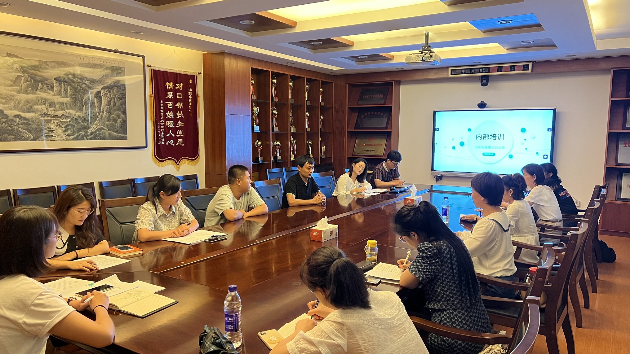 为提升职工业务水平、提高思想认识、增进沟通交流,第三分世俱杯最新官网_世俱杯(中国)党支部分批次对项目部一线职工进行培训、调研。8月9日下午,以一线女职工为代表的首批参培人员接受了以党建引领,涵盖工程、机料、财务、人事等内容的内部培训。