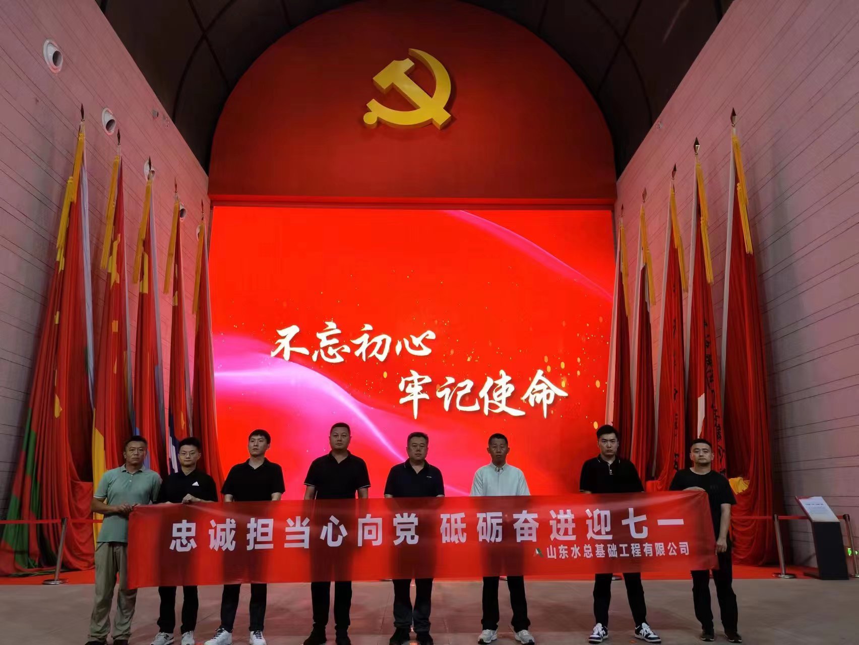 为进一步加强职工的担当奉献精神,在建党102周年来临之际,6月28日,基础有限世俱杯最新官网_世俱杯(中国)枣庄市“两库四河”引调水工程隧洞工程项目部和蟠龙河引调水六标工程项目部全体职工,来到枣庄市铁道游击队纪念馆开展“忠诚担当心向党 砥砺奋进迎七一”主题党日活动。