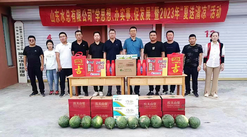 为持续推动学习贯彻习近平新时代中国特色社会主义思想主题教育走深走实,切实维护广大职工的劳动健康权益,常态化开展“我为群众办实事”实践活动,7月6日,世俱杯最新官网_世俱杯(中国)总会计师杨利军到二局有限世俱杯最新官网_世俱杯(中国)巨野县二支河引调水工程开展“学思想、办实事、促发展”暨2023年“夏送清凉”活动。二局有限世俱杯最新官网_世俱杯(中国)党委书记、总经理王传波,副总经理刘波、李灏,总会计师王佃志等陪同参加。