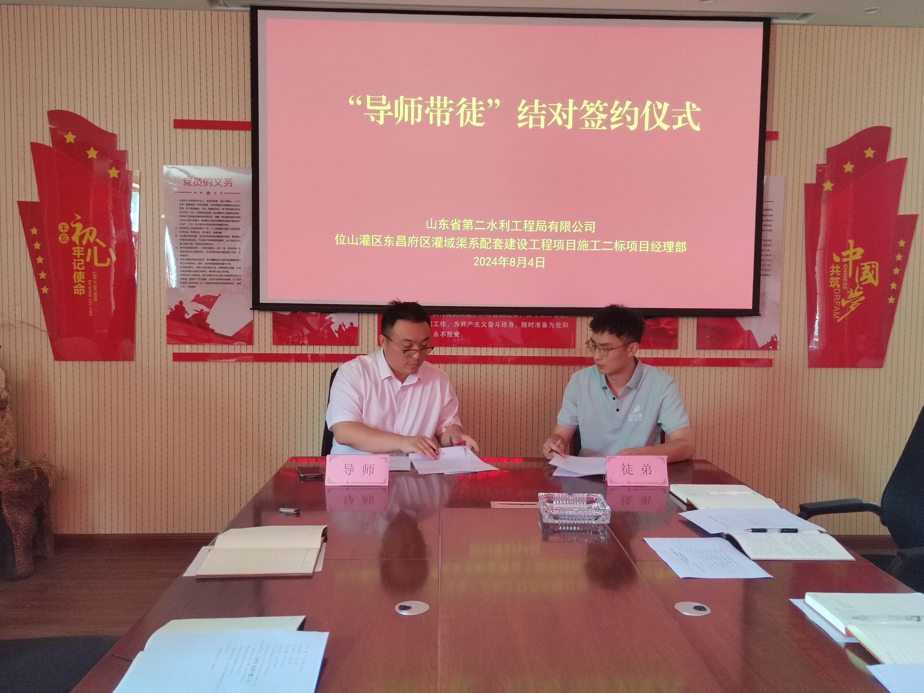 近日,二局有限世俱杯最新官网_世俱杯(中国)位山灌区东昌府区灌域渠系配套建设工程项目施工2标项目经理部举行了“导师带徒”结对签约仪式。