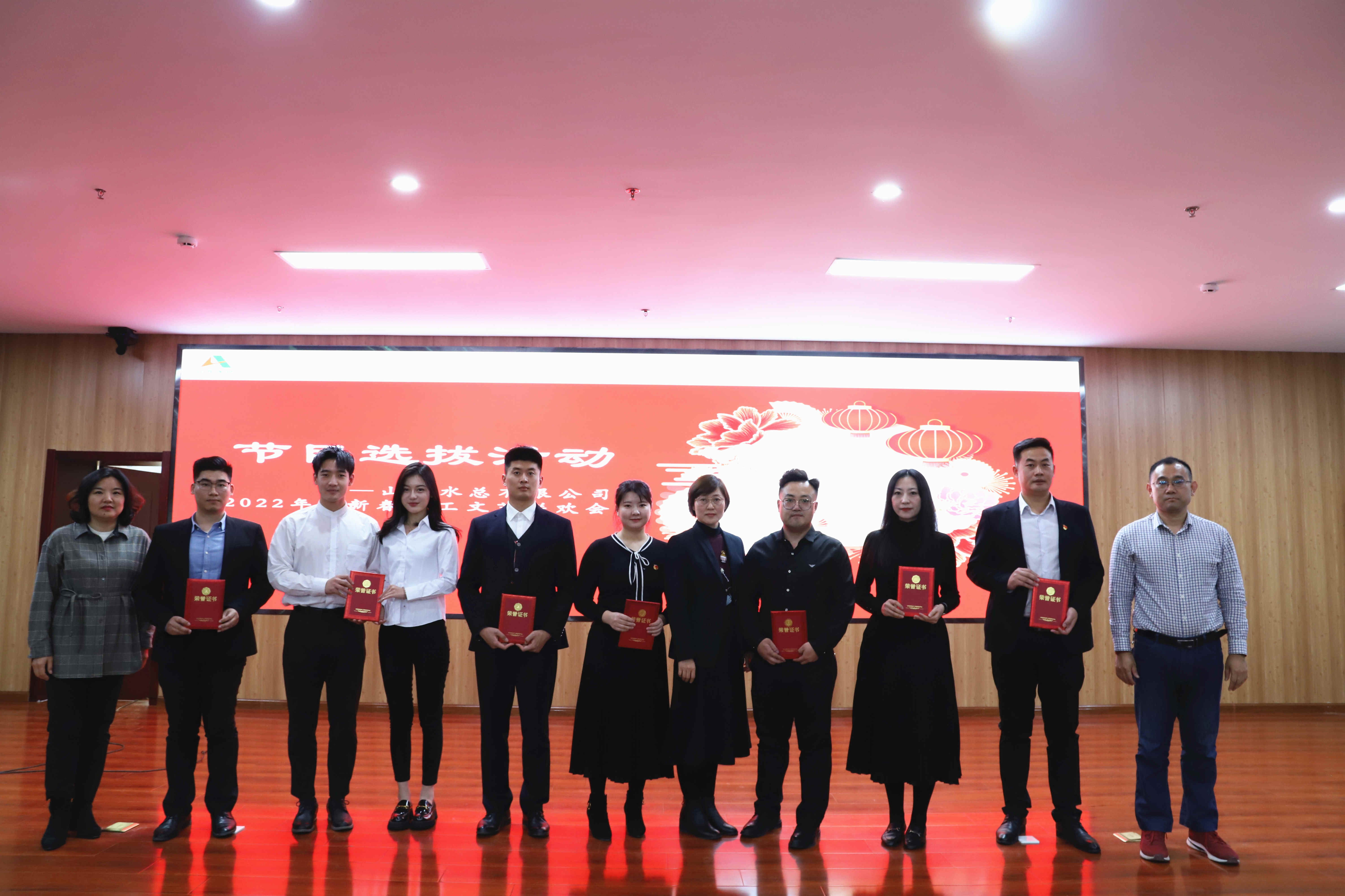 春风传喜讯,瑞虎踏歌来。山东水总2022年迎新春职工文艺联欢会节目选拔赛活动在《百年风雨 砥砺奋进》诗歌朗诵中拉开帷幕,选拔活动由歌曲、朗诵、乐器表演等15个节目组成,全方位展现了世俱杯最新官网_世俱杯(中国)职工热爱伟大祖国、追梦伟大时代、奉献伟大事业的精神风貌,以实际行动表达讴歌了国家发展的辉煌成就。现场评委由世俱杯最新官网_世俱杯(中国)领导、部室负责人代表及职工代表组成。