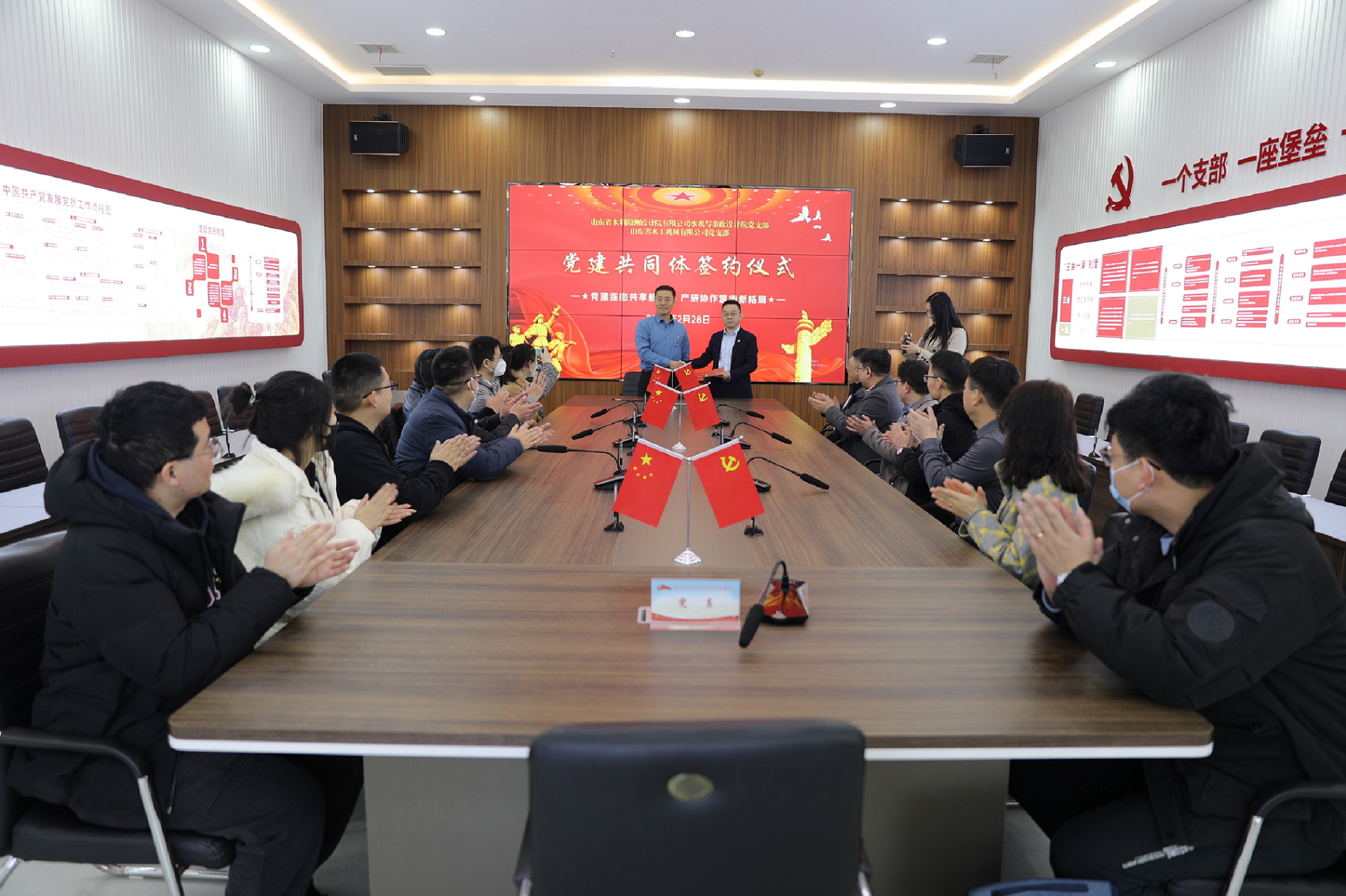 为深入贯彻党的二十大精神,以“党建链”助力产业链,形成“资源共享、优势互补、双相促进、共同提高”的共建新格局,2月28日水工机械世俱杯最新官网_世俱杯(中国)党支部与山东省水利勘测设计院有限世俱杯最新官网_世俱杯(中国)水机与市政设计院党支部在曲阜党性教育基地举行“党建共同体”签约仪式,共同绘制党组织结对共建发展蓝图。