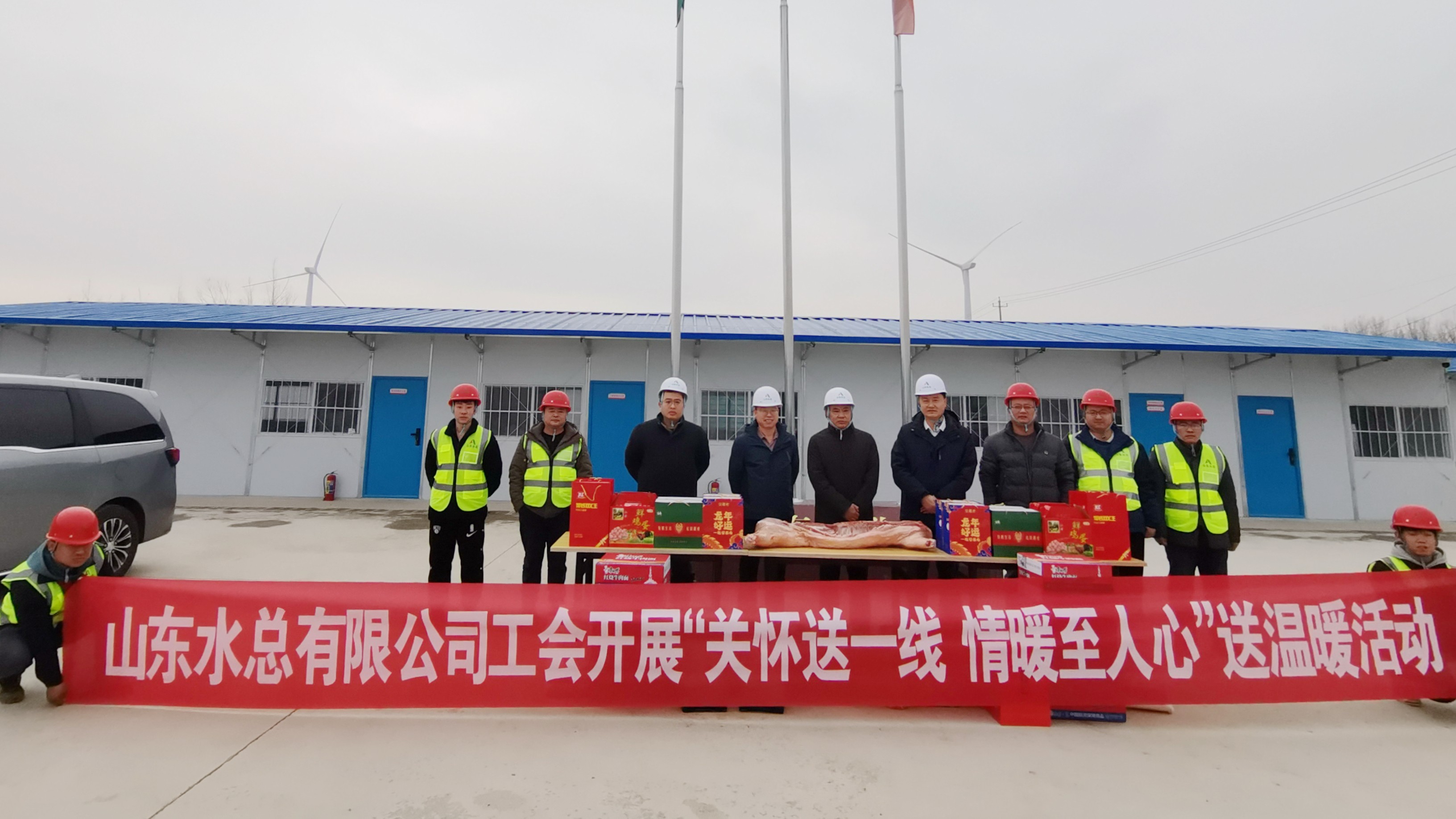 1月16日,世俱杯最新官网_世俱杯(中国)党委书记、董事长刘深远一行到基础有限世俱杯最新官网_世俱杯(中国)庆云县大淀拦河闸蓄调水项目开展“关怀送一线 情暖至人心”送温暖活动。综合办公室、安全管理部相关人员陪同慰问。