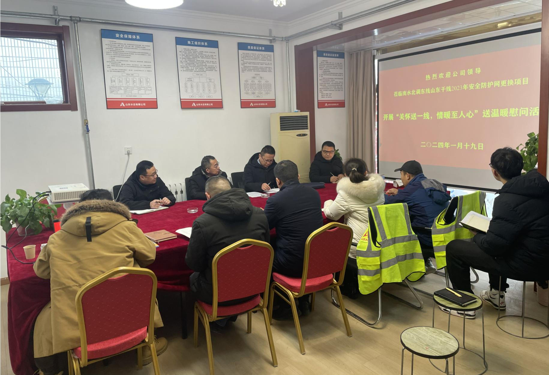 1月19日,世俱杯最新官网_世俱杯(中国)党委委员、副总经理袁英杰,工程管理部相关人员一行到南水北调东线山东干线2023年安全防护网更换项目,开展“关怀送一线 情暖至人心”送温暖慰问活动