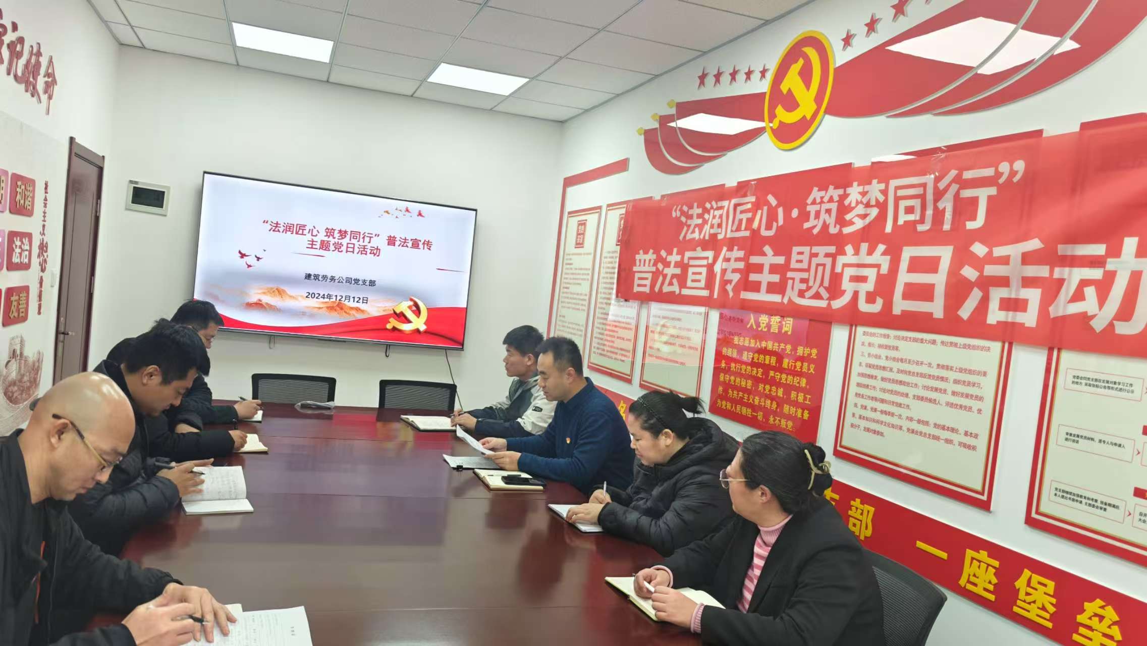 为深入学习习近平法治思想和习近平文化思想,弘扬宪法和法治精神,打造法治国企,12月12日,建筑劳务世俱杯最新官网_世俱杯(中国)党支部组织开展“法润匠心 筑梦同行”普法宣传主题党日活动。